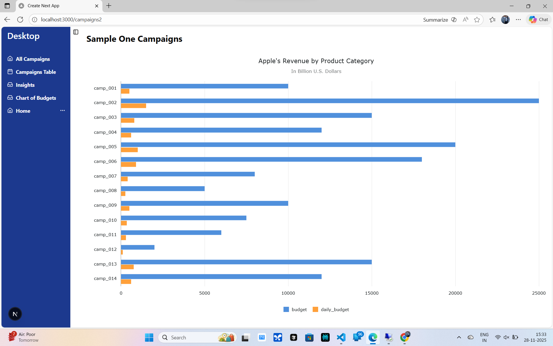 Tech Stack: Front-End: Next.js (React), TailwindCSS, Shadcn, AG Grid | Deployment: Vercel. Campaign Desktop is a monitoring dashboard designed to provide clear insights into campaign performance. Built with modern frontāend technologies, it emphasizes speed, responsiveness, and a clean UI that balances functionality with aesthetics.