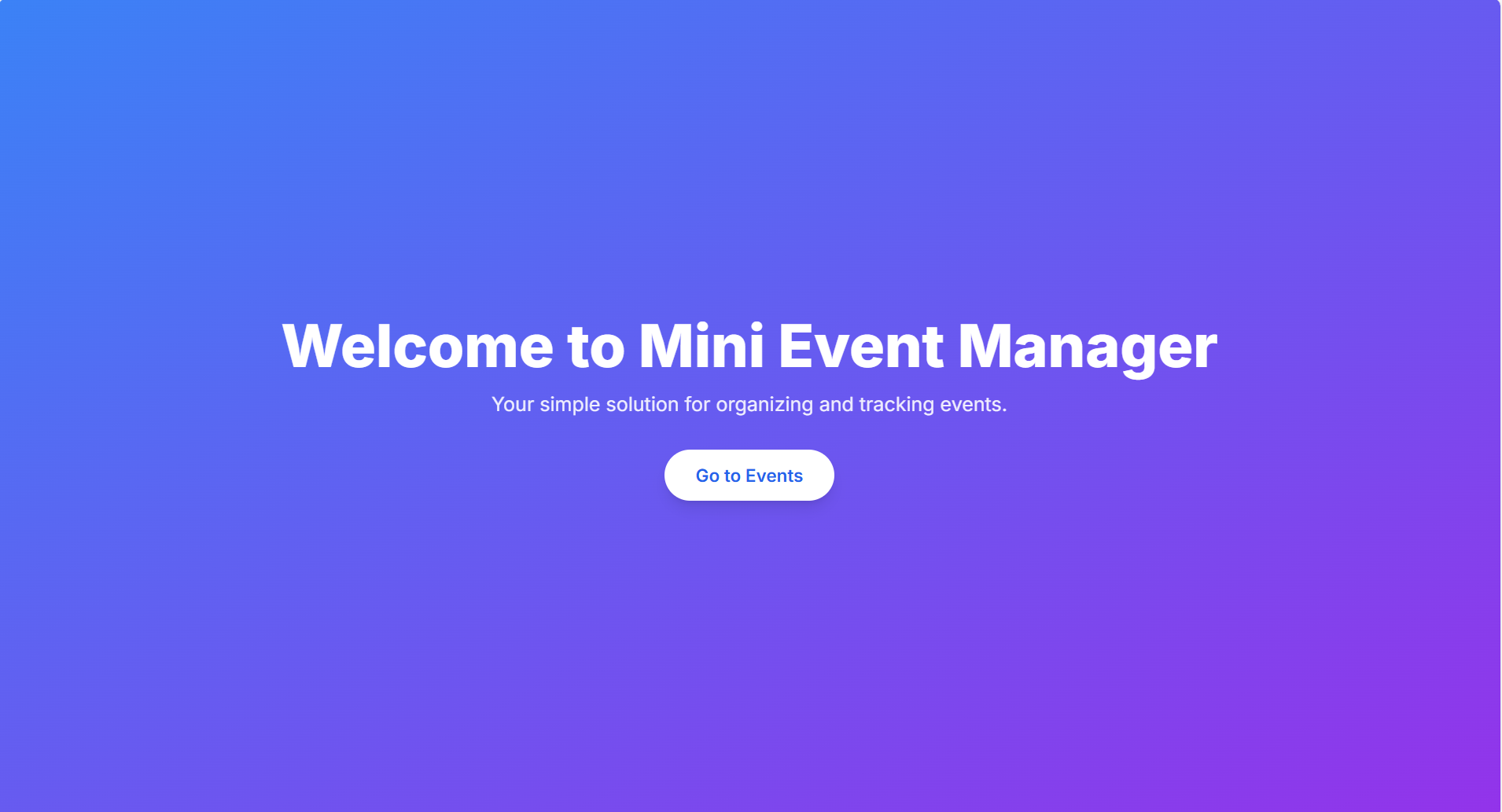 Tech Stack: React, Tailwind CSS, Vite Overview: This project is a mini event management tool designed to help users organize and manage events seamlessly. It features a user-friendly interface, real-time collaboration tools, and robust backend support for event scheduling and tracking.