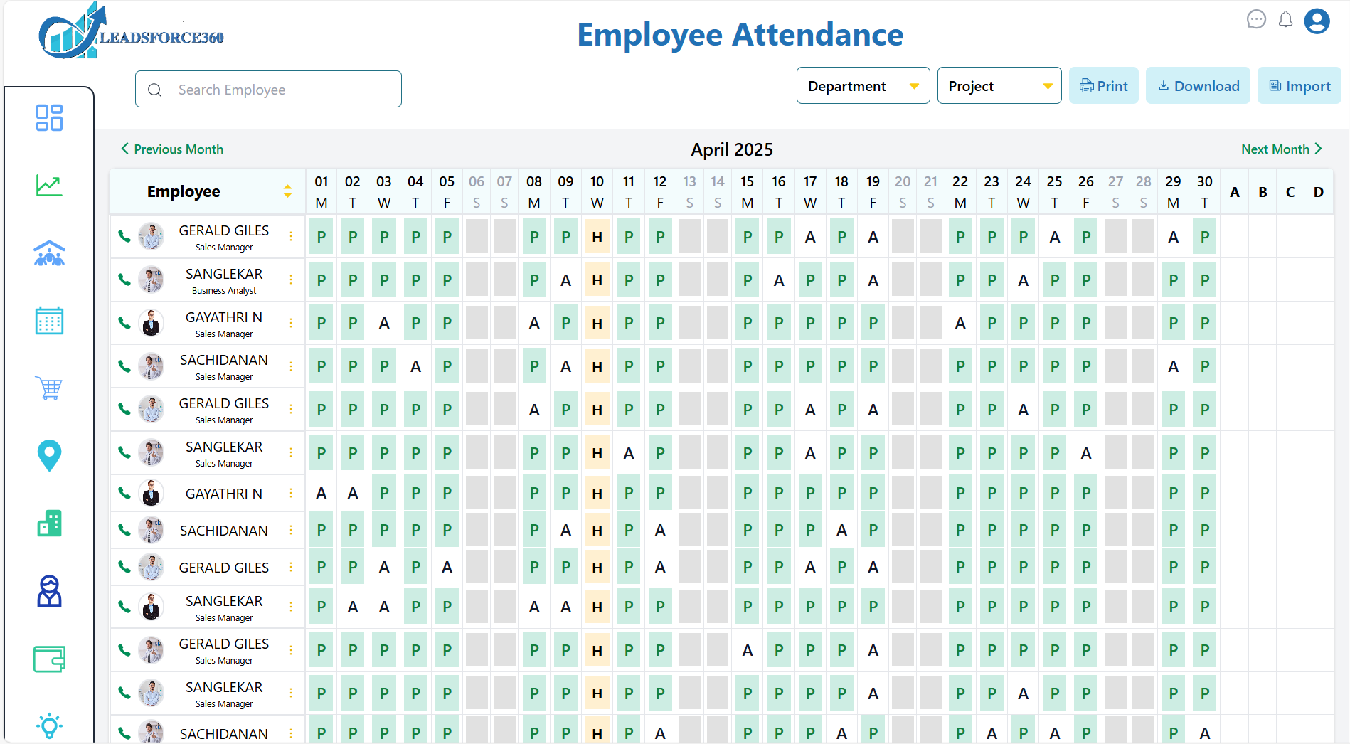 Tech Stack: React, Tailwind CSS, Vite Overview: This project is a responsive, utility-focused dashboard designed to track and manage employee attendance across departments. It provides a month-wise calendar view with detailed daily status indicators for each employee, streamlining HR operations and attendance reporting.